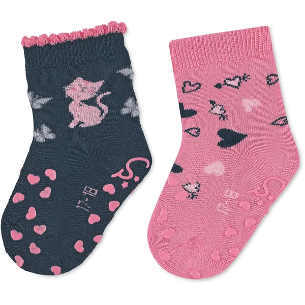 Sterntaler ABS kruipsokken dubbelpak kat/hart marine