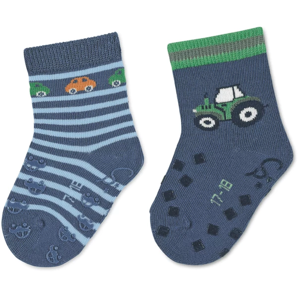 Sterntaler ABS Peutersokken Twin Pack Cars/Tractor Blauw