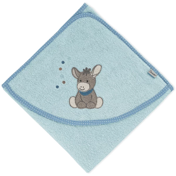 Badhanddoek van zachte badstof met geappliqueerd borduurmotief Donkey Emmi. De knuffelgarantie na de B aden .