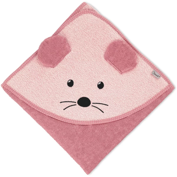 Badhanddoek met kap van zachte badstof met geappliqueerd borduurmotief Mouse Mabel. De knuffelgarantie na de B aden .