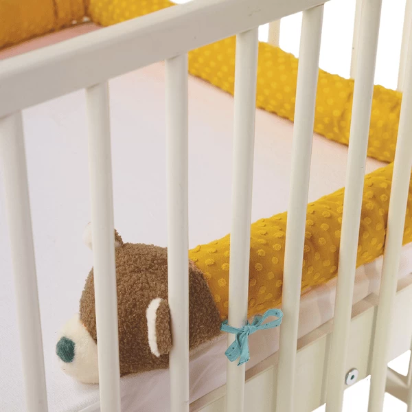 De zachte bedrol van reliëftrui, pluche en nicki uit de serie dragen “Ben”. Voor het knuffelen in bed of in de kar, als extra randbescherming als nest en in de box. Kan worden vastgebonden en beschermt tegen tocht.