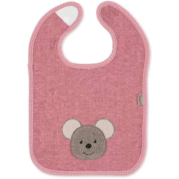 Praktisch klittenband slabbetje voor het gemakkelijk aan- en uitkleden in zachte badstofkwaliteit met geappliqueerd borduurmotief Mouse Mabel.