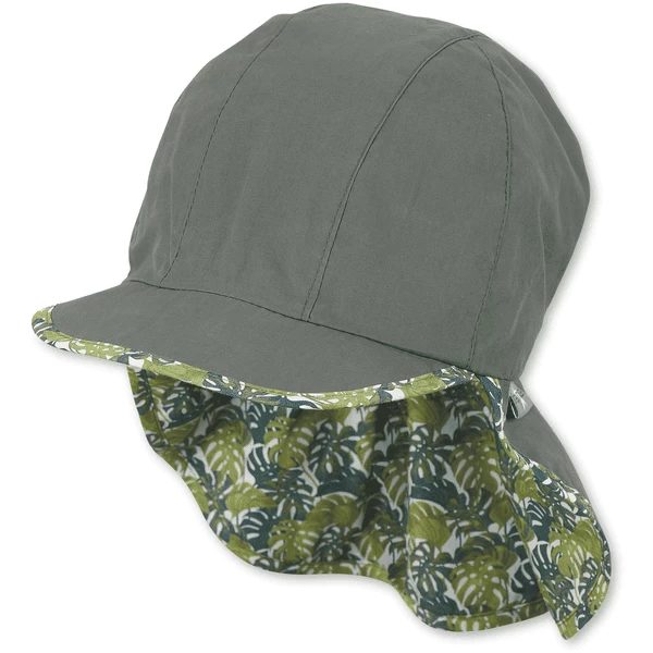 Sterntaler Omkeerbare puntmuts met nekbeschermer Bladeren Donkergroen