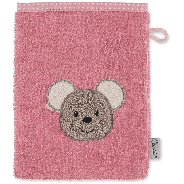 De badstofwashandschoen met geappliqueerd borduurmotief Mouse Mabel staat garant voor plezier tijdens het wassen.