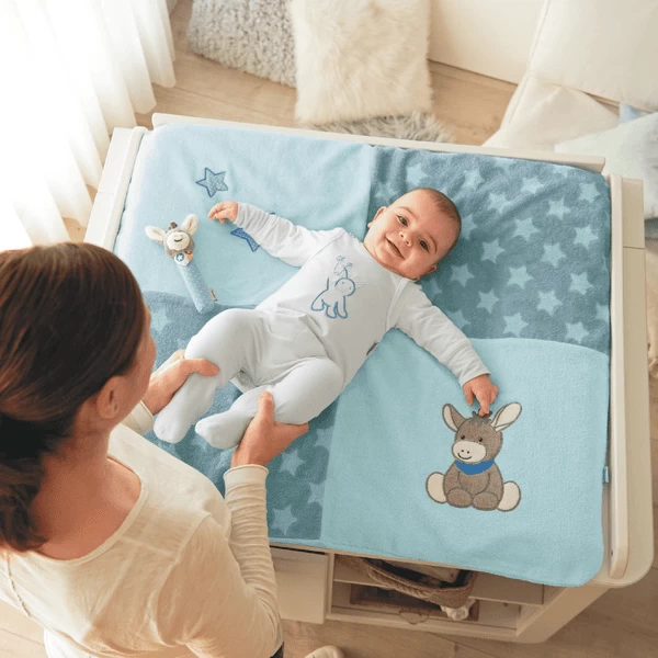 Wisselkussenhoes van badstof met aangebracht borduurmotief Donkey Emmi – warm, zacht en hygiënisch.