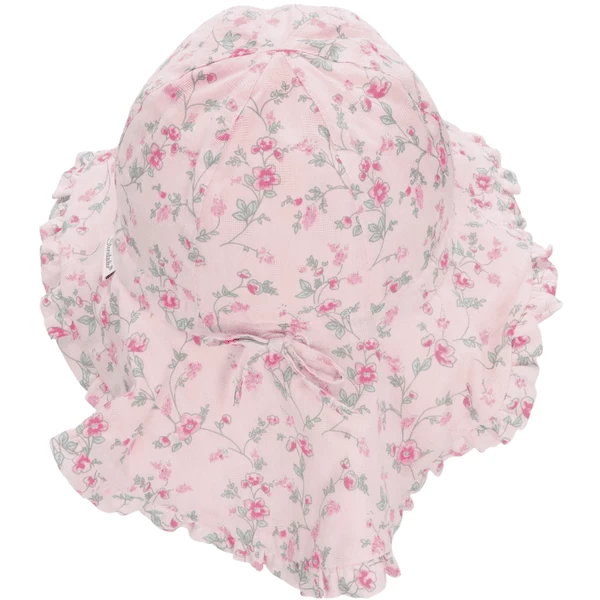 - Zonnehoed van katoenen stof, bedrukt met bloemen.