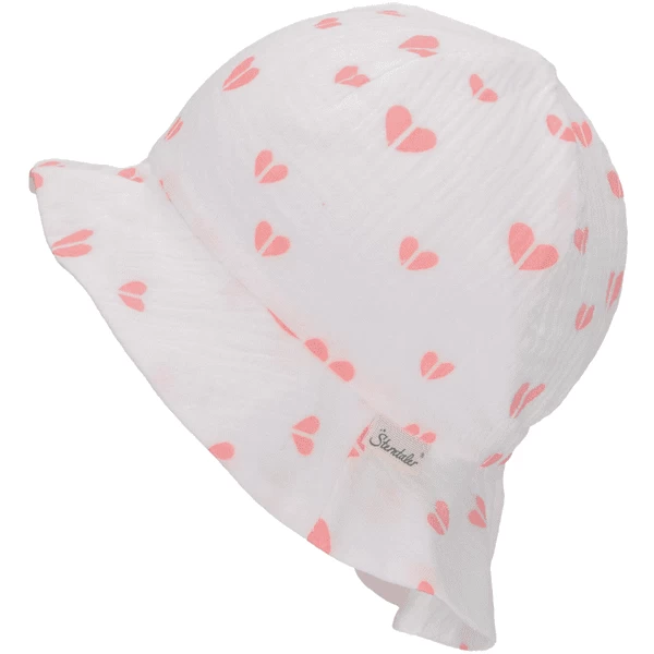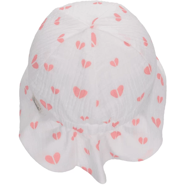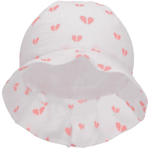 - Katoenen mousseline zonnehoed (biologisch) bedrukt met hartjes.